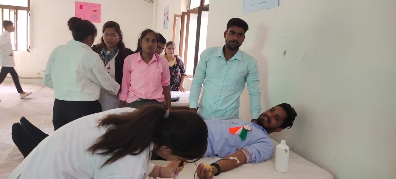 • The college NSS unit has organized Blood Donation Camp in college campus. Initially the volunteers maintained a list of Blood Donor with their blood groups and College authorities donation camp. did all other necessary arrangement required for blood
